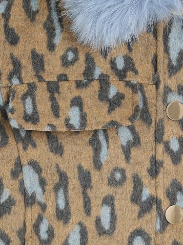 • Design: This leopard wool jacket is features with fully-lined/ Turn-down lapel collar/ Snap-button down/ Fake chest pockets/ 2 side pockets/ Fluffy faux fur collar jacket/ Furry bands pea coat/ Widely leopard print/ Short length/ thermal wool blend crop coat outwear