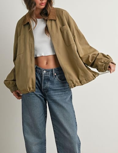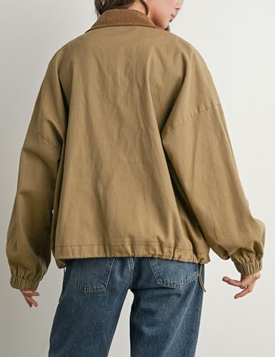 More information about Women’s Barn Jacket Corduroy Collar Zipper Utility Jacket Cinchable Hem Workwear Jacket with Pockets
