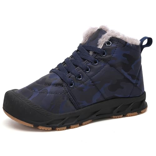 Winter Snow Boots for Kids snug Faux Fur Lined Ankle Booties Lace Up Slip on Outdoor Walking Shoes for Boys Girls