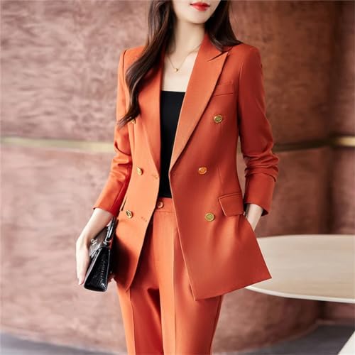 popular ! Women Professional Double Breasted Fashion Blazer and Pants Sets Office Ladies Work Wear Yellow Suits