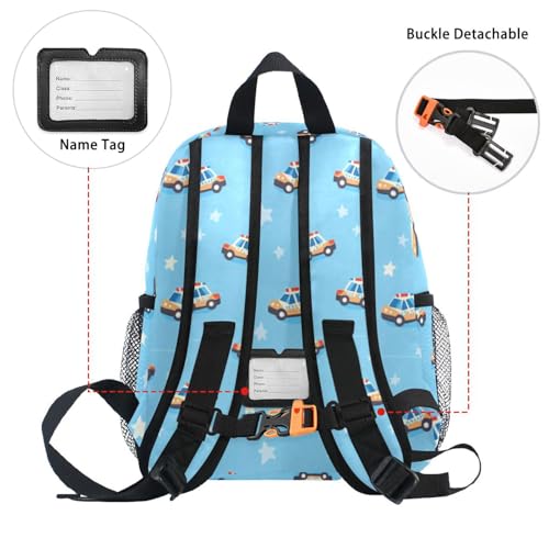 Plaaee Toddler Backpack for Boys Cute Cartoon Police Car Kids Preschool Kindergarten Backpacks for Girls M 7