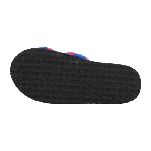 • Fluffy slipper with a faux fur pattern strap and footbed