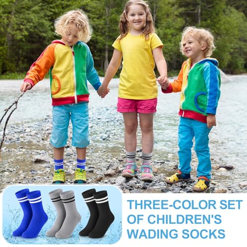 Geyoga 3 Pairs Waterproof Socks for Kids Girls Boys Outdoor Wading Socks Breathable Skiing Hiking Socks for Travel Camping 3