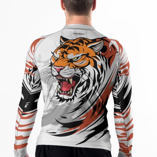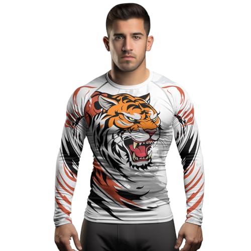 Tiger Baselayer Compression Rash Guard Shirt Men's Long Sleeve Fight Wear for MMA BJJ Muay Thai Jiu Jitsu