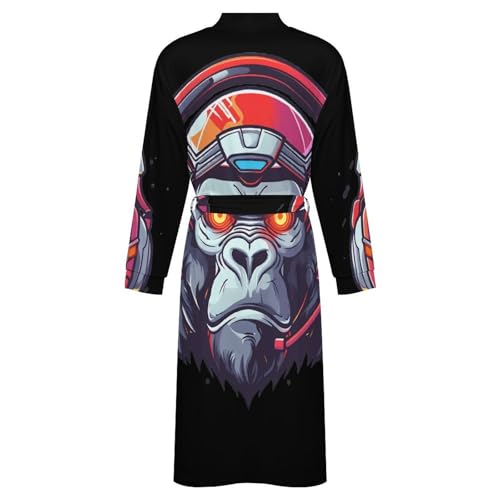 Robo Gorilla silky Robe Long Sleeve Bathrobes V Neck Sleepwear Spa Robes with Belt Men Woman