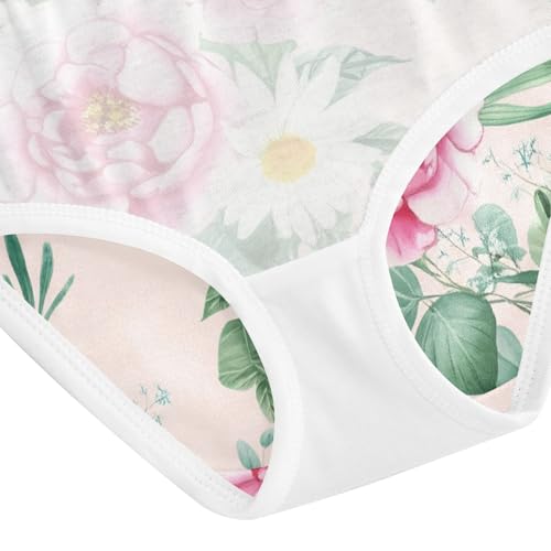 Toddler Underwear Floral 2t Cotton Cute Panties Girl Flower Briefs Kids Undies Floral Watercolor Peonies Pink