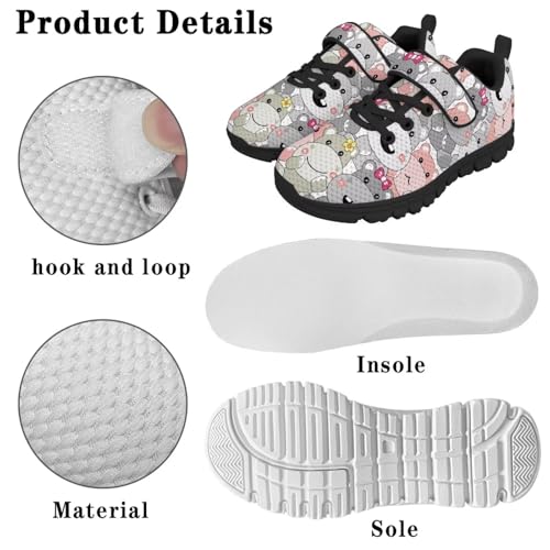 Little Kid Tennis Shoes Slip On Boys Girls Sneakers Casual Running Shoes Woven Breathable with silky Soled Sports Hook-Loop Outdoor Shoes Cartoon Hippo Pattern