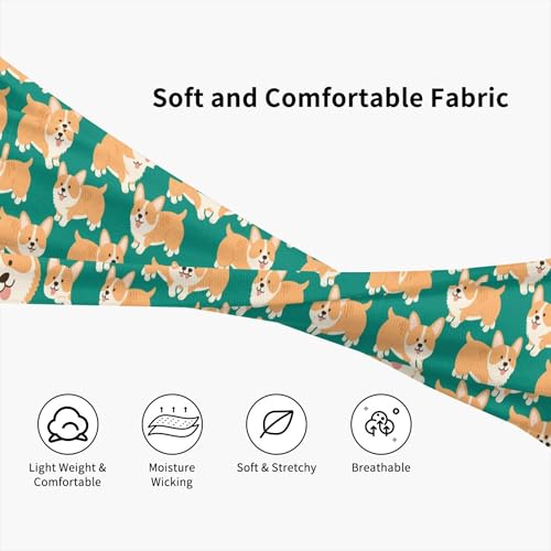Boys Girls Sports Sweat Bands, Boho Style Long Head Band for Yoga Travel Spa, Cool Cute Corgi Puppies Dogs Art Headdress Hair Accessories 5