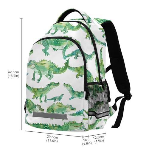 Backpack for Students Boys Girls Crocodile Pattern Watercolor School Bag Travel Daypack Rucksack 6