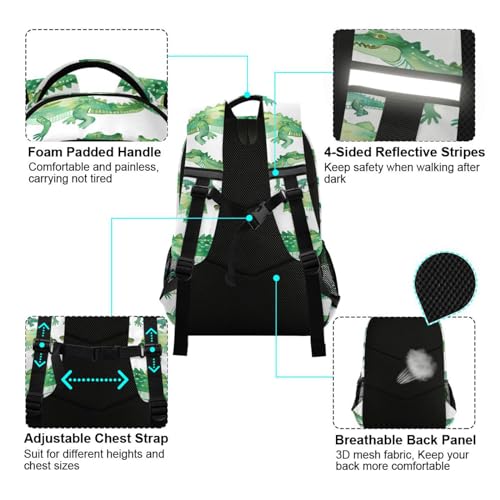 Backpack for Students Boys Girls Crocodile Pattern Watercolor School Bag Travel Daypack Rucksack 3