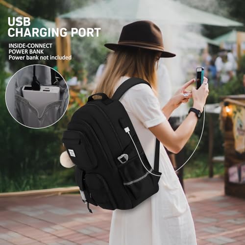 School Backpack for Teen Girls, Cute Laptop Backpack for Women Students, Middle High School Bags Aesthetic Bookbag for College Travel Fit 15.6 Inch Laptop (Black) 5
