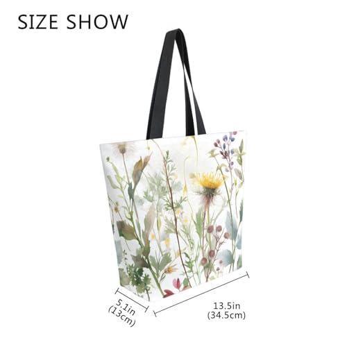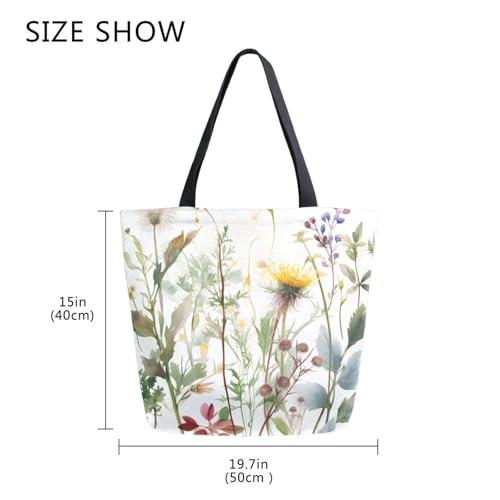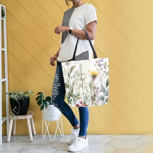 popular ! Extra Large Shoulder Tote Bag for Beach Travel Weekender Gym Watercolor Wildflowers Green Leaves Botanical Reusable Grocery Canvas Shopping Bag
