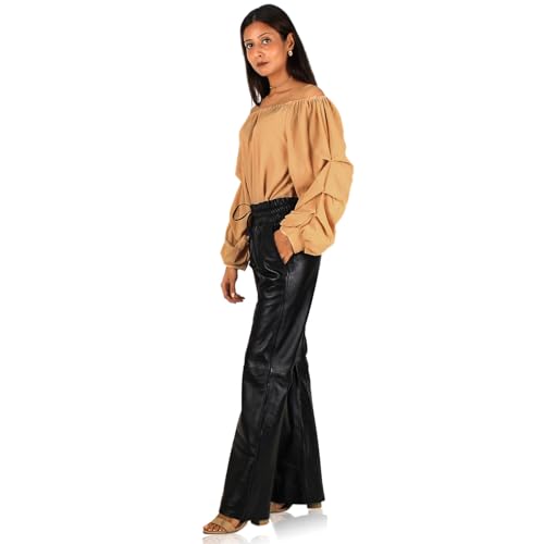 More information about Women's Genuine Lambskin vintage Flare Leather Pants (Black, Leather Joggers) - 2424001