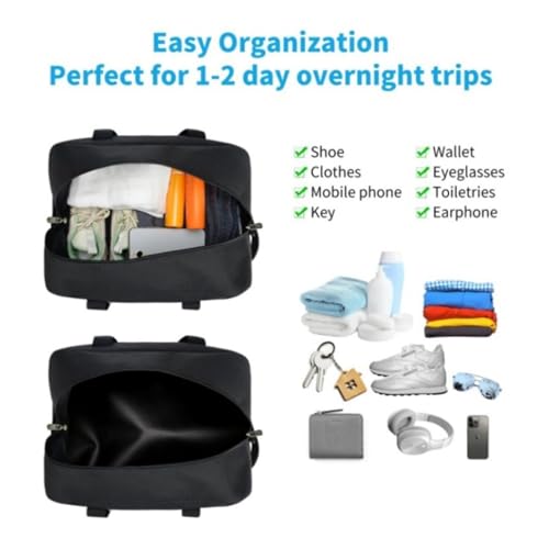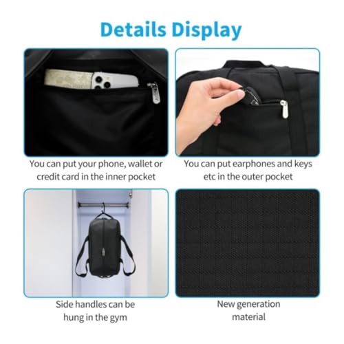 • The small weekend travel bag also comes with an adjustable PU Leather shoulder strap. Back side with a trolley sleeve allows to keep the tote attached to your roller bag or trolley luggage.