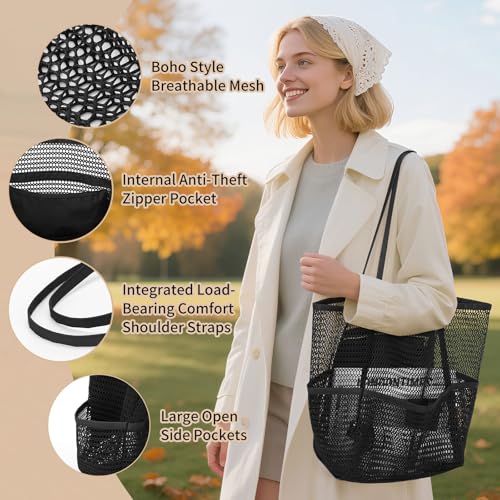 • -Roomy Mesh Beach Bag- This large capacity mesh bag fits every your beach essentials—towels, sunscreen, swim wear, shades, and more. fabulous for pool days and beach trips