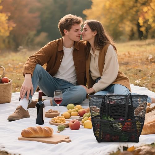 • -Versatile Uses- This isn't just another beach bag, it's your latest go-to for everything! Take it grocery shopping, to picnics, the gym, or use it for laundry and toy storage. The lightweight mesh tote even works as extra storage bags around the house. When you're done, it folds completely flat to stash in your purse, glove compartment, or closet