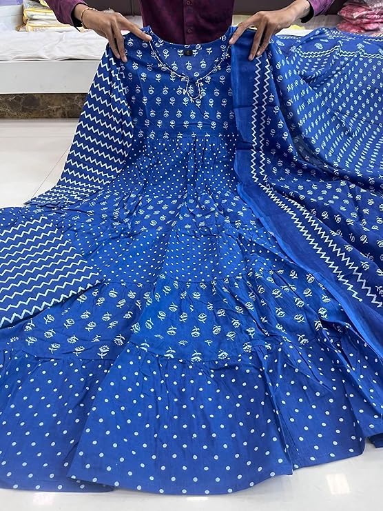 popular ! Women Cotton Indigo Hand Block Printed Kurta Pant With Dupatta