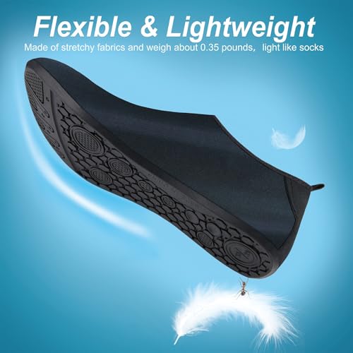 • supple: After using the Aqua Socks, you can fold it easily. Aqua Shoes with solid wicking performance, compressible craft perfect fit to foot, perfect to carry when you go out. The elastic collar design for quick wearing our water shoes, protecting your feet from dripping off.