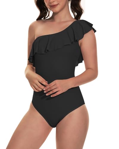 Beautikini Period Swimwear One Piece Menstrual Leakproof Swimsuit One Shoulder Ruffle Bathing Suits for Girls Teens 1