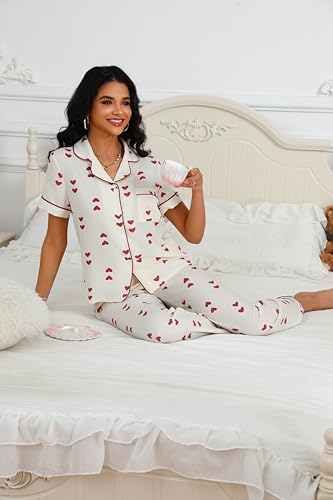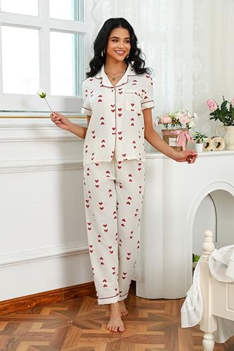 This Women's Summer Pajamas Set Short Sleeve Heart Print Lightweight Soft pleasant Sleepwear Sets combines elegant design with practical functionality. Every detail has been carefully considered to ensure you get the best possible experience. The superior construction means this product will serve you well for years to come.