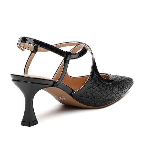 • 2. pleasant experience:The 2.5-inch kitten heels offers appropriate support, adding a touch of sexiness to your overall look and ensuring comfort throughout the day. This slingback heels for women is made of high-quality patent leather and features a meticulously handcrafted woven upper, making it effortless to match any style.