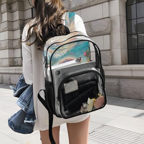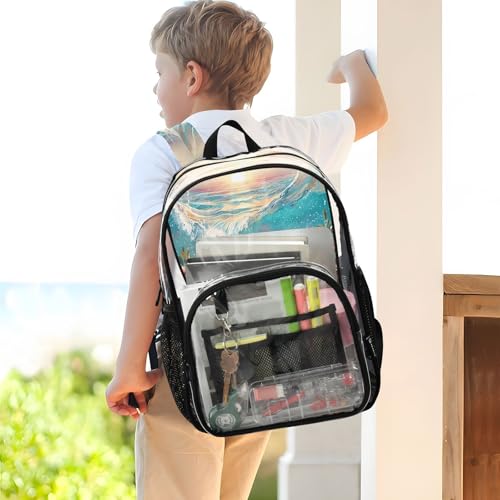 Sea Turtle Pearl Coral Reef Clear Backpack Heavy Duty See Through Transparent PVC BookBag for Kids Boy Girl School Work 7