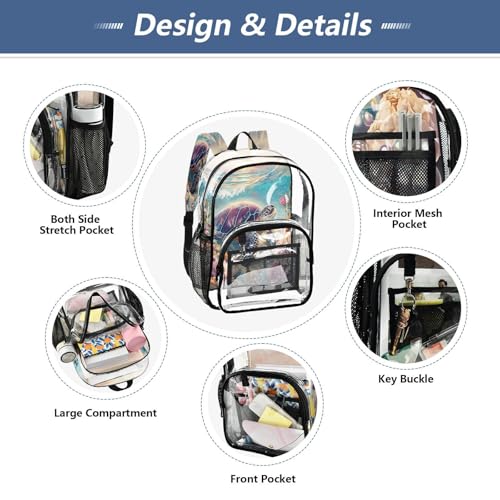 More information about Sea Turtle Pearl Coral Reef Clear Backpack Heavy Duty See Through Transparent PVC BookBag for Kids Boy Girl School Work
