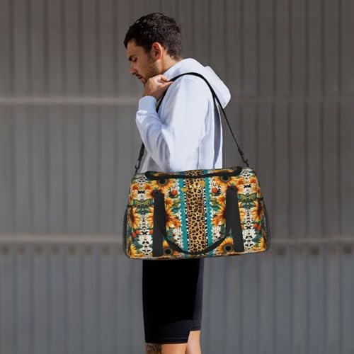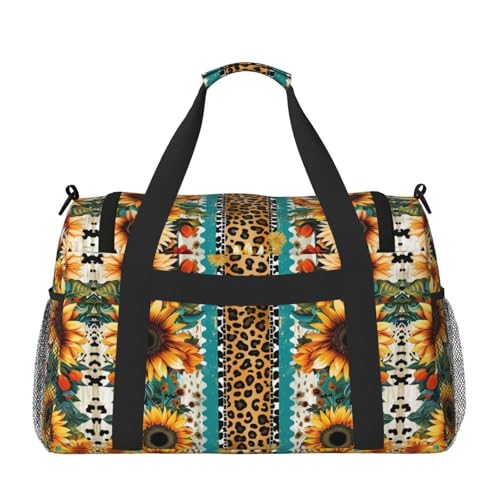 Foldable Travel Duffel Bag for Men and Women Ethnic Sunflower Leopard Pattern Overnight Bag Cheetah Workout Duffle Sports Bag Lightweight Weekender Bag for Airplane for Trip, Gym, Yoga