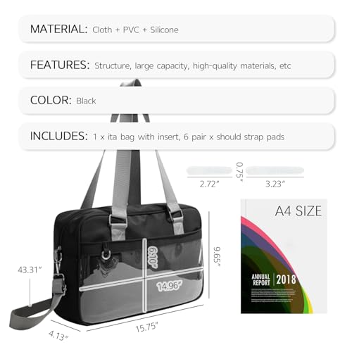 • VERSATILE & LARGE CAPACITY: This ita bag includes an adjustable shoulder strap that allows for versatile use as a crossbody bag, shoulder bag, handbag, JK uniform bag or a commute bag, outstanding for anime expo, cosplay events, theme parties, travel, hiking trips, camping, and music festivals. The main compartment is capable of accommodating A4 magazines, textbooks notepads, umbrellas, wallets, cosmetics and other supplies to meet daily travel needs. Laptops cannot be stored