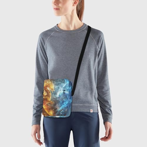 popular ! Crossbody Bag Fire Dragon Ice Blue Phoenix Messenger Bag for Women Men Purse Shoulder Bag Satchel Bag with Adjustable Strap 214B6161