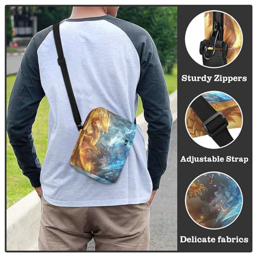 Crossbody Bag Fire Dragon Ice Blue Phoenix Messenger Bag for Women Men Purse Shoulder Bag Satchel Bag with Adjustable Strap 214B6161 7