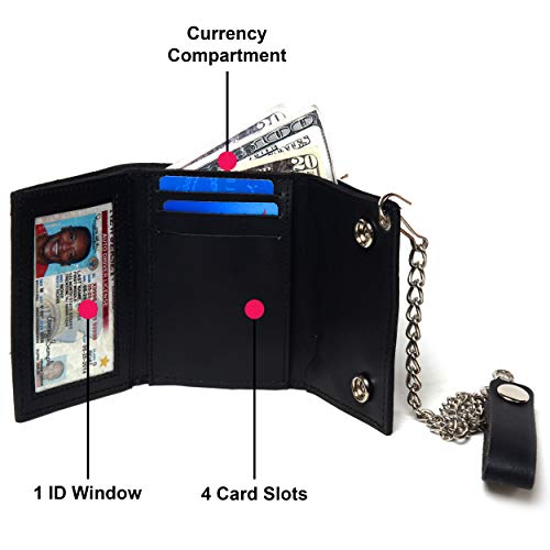 Why Choose Leatherboss Genuine Leather Trifold Designer Motorcycle Biker Chain Wallet Credit Card Cash with ID Holder, Black?
