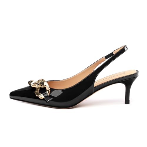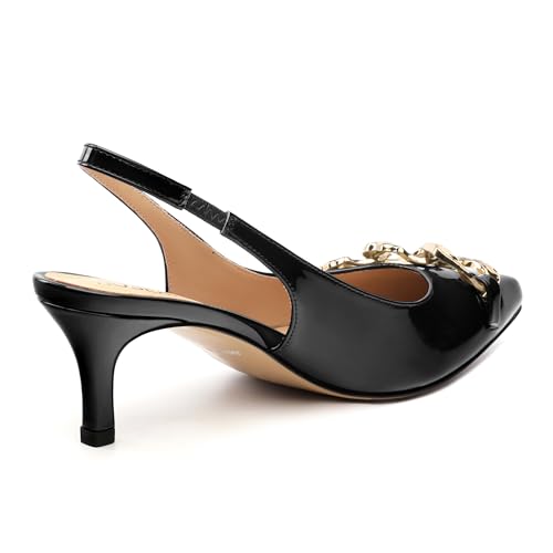 • chic Design: Featured elegant closed pointed toe, chic adjustable slingback strap, trendy metal chian detail, adding a latest and fashionable touch to your ensemble with these womens pumps