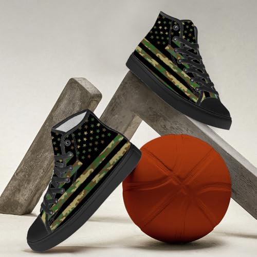 American Flag Camouflage High Top Shoes 4th of July High Top Canvas Sneakers Lace Up Black Shoes for Men Women 6