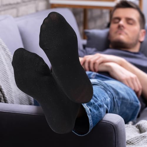 Fabric type: PolyesterCare instructions: WashOrigin: ImportedFit type: RegularAdequate Quantity: the package includes 100 pairs of ankle socks, 60 in black, 40 in white, enough to meet your daily needs of replacementSoft Polyester Fabric: these low cut ankle socks for women men are made of quality polyester material, with good ability of absorbing the sweat on your feet and helping your sweat to evaporate effectively, plush enough to wearComfortable and Breathable: the bulk socks for women featuring a breathable surface and helping to keep your foot temperature regulated during the warmer months for a fresh and cool feel; These low cut socks provide comfort for your feet even during intense exerciseElastic Cuff: the cuffs of the women's ankle socks are designed with good elasticity to fit gently around your ankles without being too loose or too tight, so they don't fall off easily or make your feet feel uncomfortable due to too much constrictionWidely Applicable: these women no show socks can be worn with a variety of outfits from sneakers to low top boots, shorts to jeans, etc.; Thin socks have a breathable surface and are suitable for 4 seasons, making them ideal for walking and exercising Perfect for everyday use. supreme materials and excellent craftsmanship ensure long-lasting durability.