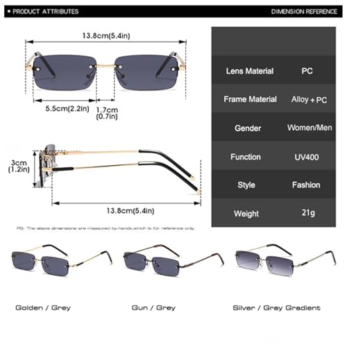 hot Fashion Rectangle Sunglasses for Women Vintage Rimless Clear Ocean Gradient Lens Men Uv400 fashionable
