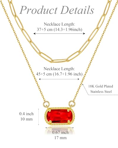 • 【Size and Material】: The paperclip necklace is 15"+2" adjustable length, and birthstone necklace is 17"+2" adjustable length. The green gemstone measuring 1.7 cm in length and 1 cm in height. The necklace is made of 18K Gold Plated Stainless Steel