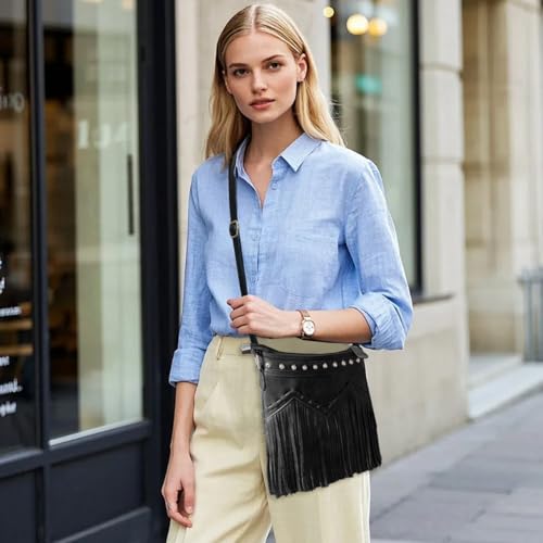 popular ! Sunwel Fashion Fringe Crossbody Bag with Rivets Western Purse Vegan Leather Tassel Shoulder Crossbody Bag for Women
