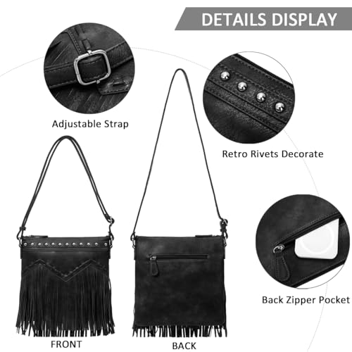 Sunwel Fashion Fringe Crossbody Bag with Rivets Western Purse Vegan Leather Tassel Shoulder Crossbody Bag for Women 3