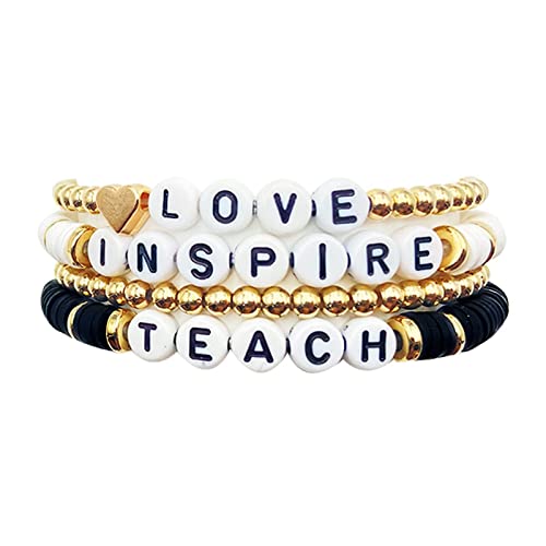 Pingyongchang Teacher Bracelet - Mixed Color Polymer Clay Bohemian Handmade Beaded Bracelets for Women - Love Teach Inspire Jewelry for Teacher Appreciation 4