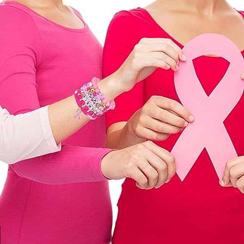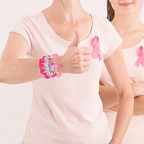 FAERLIIRY Pink Ribbon Bracelets Breast Cancer Survivor Gifts for Woman Glitter Beaded Bracelet HOPE FIGHT Pink Bracelets Breast Cancer Survivor Support Jewelry Gifts 5