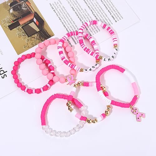 FAERLIIRY Pink Ribbon Bracelets Breast Cancer Survivor Gifts for Woman Glitter Beaded Bracelet HOPE FIGHT Pink Bracelets Breast Cancer Survivor Support Jewelry Gifts 7