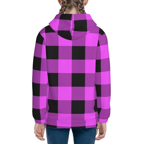 Purple Black Buffalo Plaid Kid Hoodies Boys Zip Up Sweatshirts Girls Pullover with Pocket 5