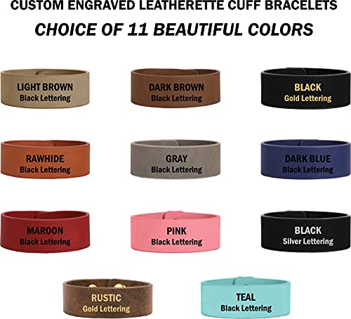 Etch Workz Custom Engraved Bracelet, Personalized Faux Leather Wristband, 9-1/2 inch X 1 inch Leatherette Cuff Bracelet, Name Wristband, ID Bracelet, Customized with Name or Text 7