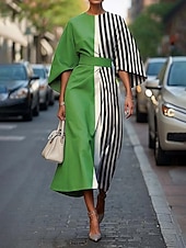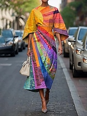 More information about Women's Midi Dress Floral Dress Print Dress Fashion traditional current Vacation Daily Holiday Regular Fit Flower Half Sleeve Crew Neck Yellow Orange Green Summer
