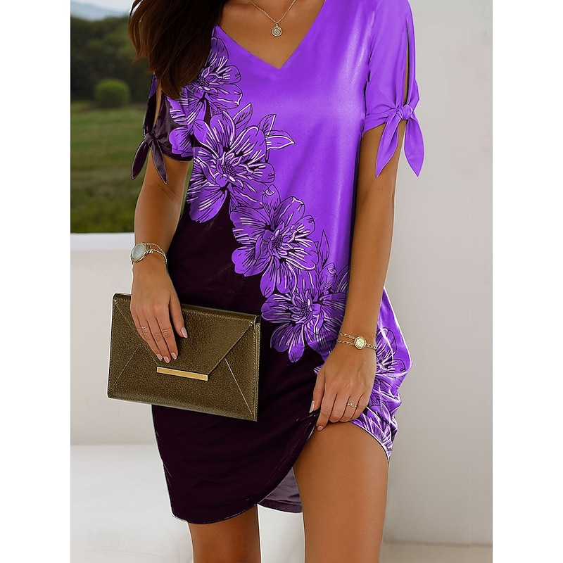 This Women's Mini Dress Casual Dress T Shirt Dress Tee Dress Summer Dress Elegant Vacation Vintage Cold Shoulder Regular Fit Ombre Floral Graphic Short Sleeve V Neck Pink Red Blue Purple Summer Spring combines elegant design with practical functionality. Every detail has been carefully considered to ensure you get the leading possible experience. The supreme construction means this product will serve you well for years to come.