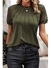 Women's Elegant Lace Tops Blouse Army Green Navy Blue Plain Lace Street Daily Fashion Round Neck Regular Fit Black Semi Formal Blouses
