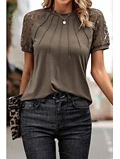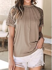 Highlights [Fabric] : Crafted from a smooth and lightweight polyester fabric, this lace shirt guarantees comfort while ensuring a chic style. The material is micro-elastic, offering ease of movement and a comfortable fit. [Fit] : The shirt features a regular fit, providing a flattering silhouette that complements various body types. Its relaxed nature makes it a versatile choice for all-day wear. [Design Highlights] : The centerpiece of this top is its intricate lace detailing on the short sleeves, which adds a touch of femininity and sophistication. The pleated front contributes to its vintage appeal, while the round neck design is ideal for accessorizing with your favorite necklaces. [Occasions] : Perfect for street style and daily wear, this lace shirt is an excellent choice for both casual outings and more fashionable events. Pair it with jeans or skirts for a versatile look that fits many occasions. [Size Range] : Available in sizes S, M, L, and XL, catering to a broad range of fits. The color options include Brown, Black, Navy Blue, Gray, Army Green, and Khaki, providing ample choices to suit your style preference. Perfect for everyday use. supreme materials and excellent craftsmanship ensure long-lasting durability.
