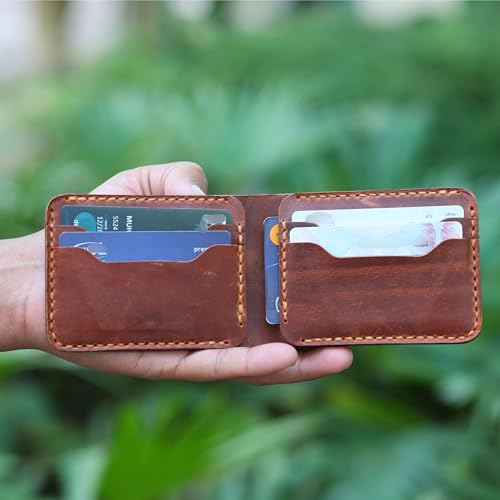 Handmade Men’s Leather Bifold Wallet – Slim RFID Blocking Card Holder – Full Grain Vintage Leather – 4 Card Slots, 2 Hidden Pockets, Bill Compartment – Gift for Men 5
