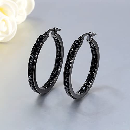 • Material: Black gold plated stainless steel hoop earrings with black cubic zirconiam. The solid earrings has a high polish finish, do not harm your skin. Hypoallergenic for sensitive ears